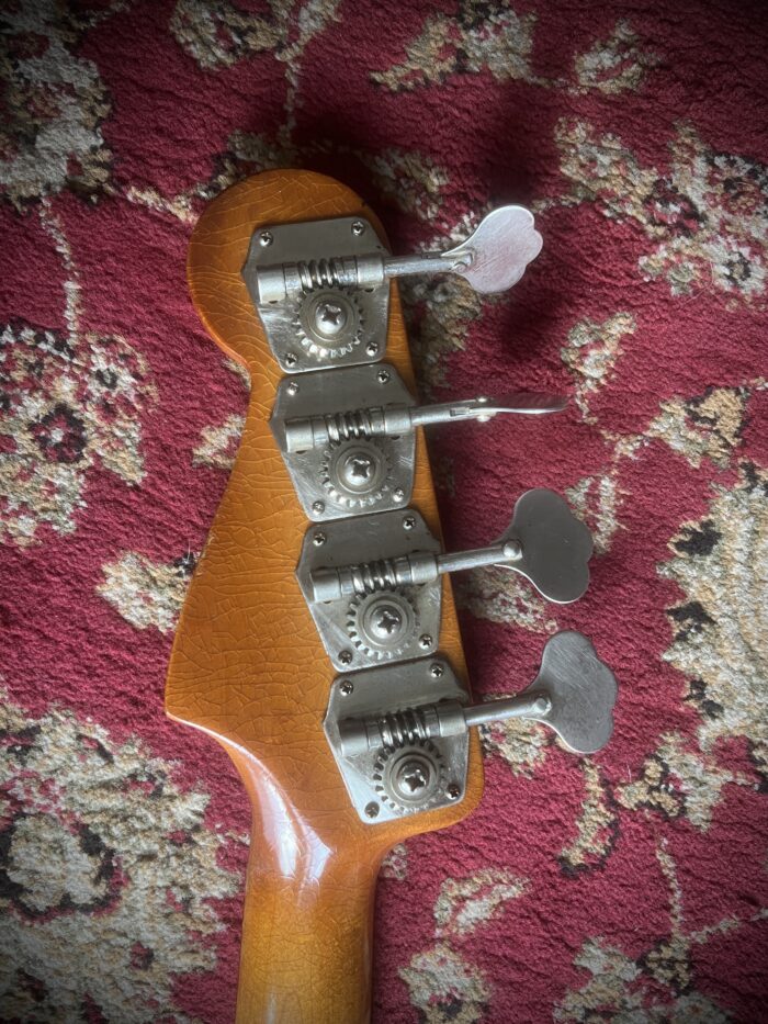 This instrument had a full refret , new nut and a complete refinish but every part of the bass is genuine , from the pickups, to the pots, to the hardware.
