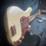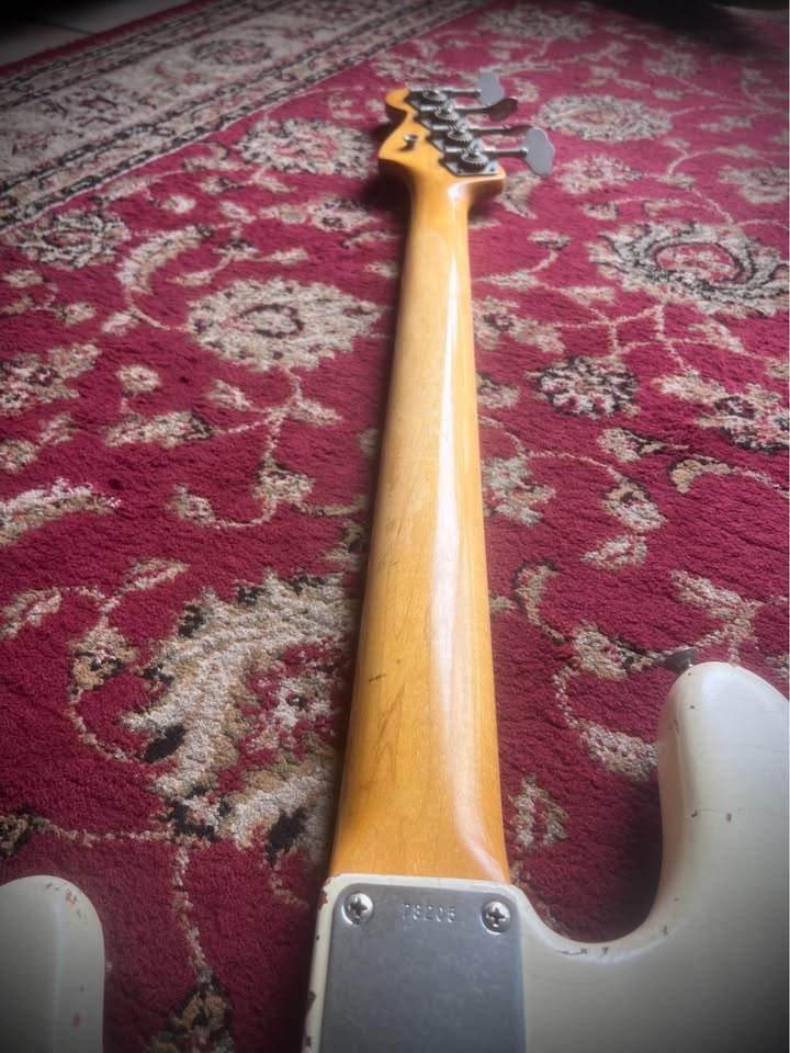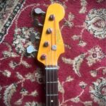 This version of the jazz bass only lasted 3 years and is known as “longhorn” or “boner” due to the longer upper horn to balance the weight as the short one has been cut deeper to access all the frets on the neck.