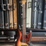 With a beautifully aged original 3 colour sunburst finish, this 50 years old Fender Precision Bass is a great player, thanks to the light weight and the huge sustain.