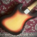This version of the jazz bass only lasted 3 years and is known as “longhorn” or “boner” due to the longer upper horn to balance the weight as the short one has been cut deeper to access all the frets on the neck.