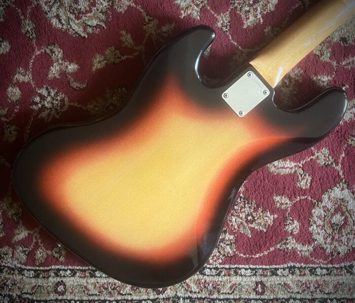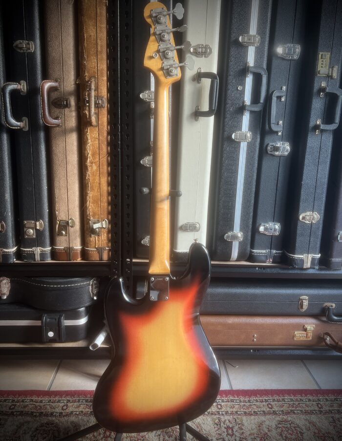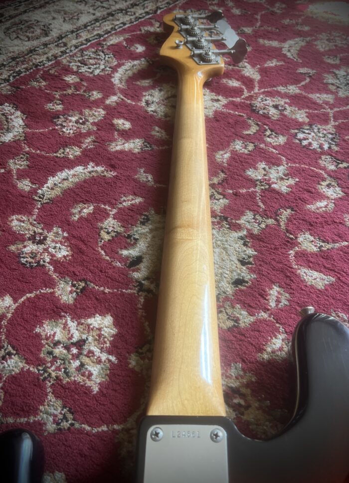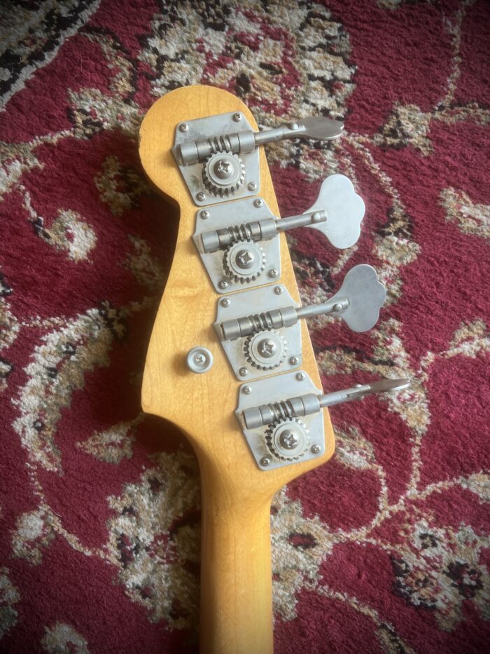 This version of the jazz bass only lasted 3 years and is known as “longhorn” or “boner” due to the longer upper horn to balance the weight as the short one has been cut deeper to access all the frets on the neck.