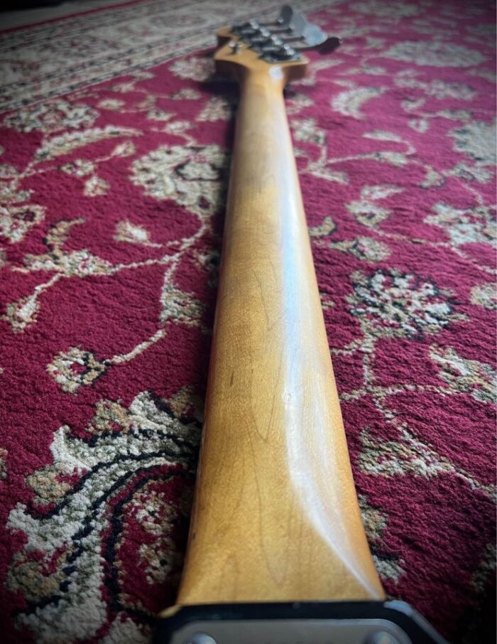 A real gem and a must have for any Warwick enthusiast, this 41 years old Streamer is one of the early “paddle headstock” ones with the original design, before the german company change the look of it after having issues with Stuart Spector. Only the first 300 streamer made came out with the paddle headstock and after the first 150, Warwick added ”licensed by Spector” on the trussrod cover to avoid issues with the American Brand. The serial number on this one is 103, and has a phenomenal neck and weight (3.5kg), making it super comfortable to play and the original EMG pickups have a growl that would make the crowd rattle their teeth.