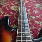 This version of the jazz bass only lasted 3 years and is known as “longhorn” or “boner” due to the longer upper horn to balance the weight as the short one has been cut deeper to access all the frets on the neck.
