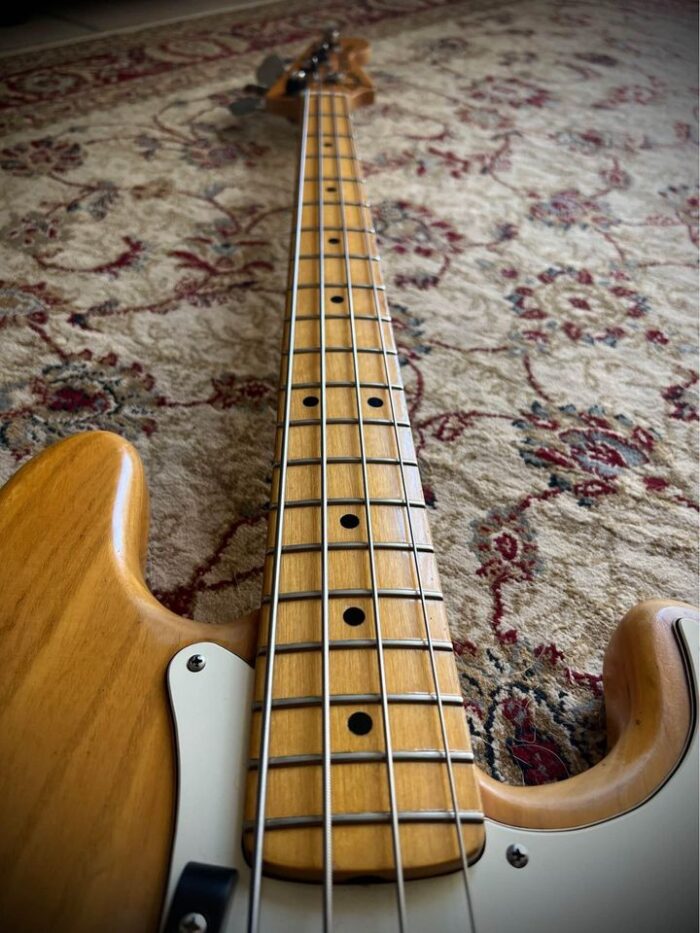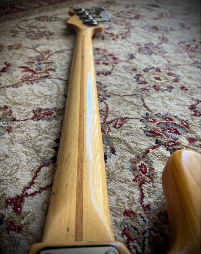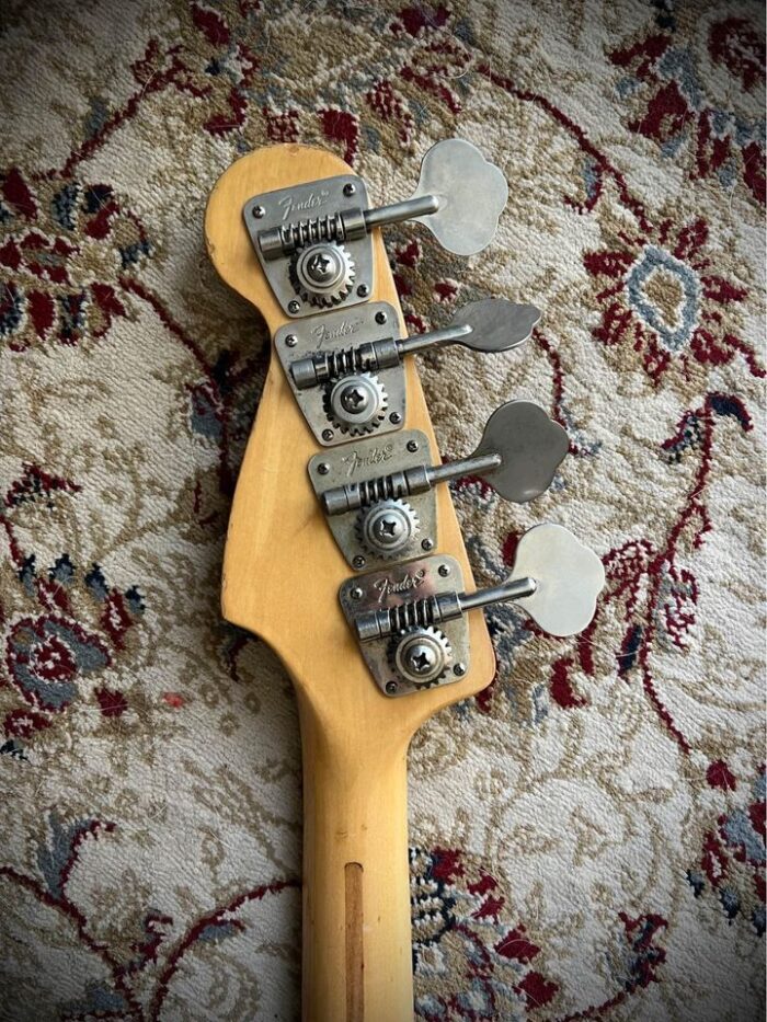 This version of the jazz bass only lasted 3 years and is known as “longhorn” or “boner” due to the longer upper horn to balance the weight as the short one has been cut deeper to access all the frets on the neck.