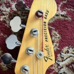 Great 50 years old Fender Precision Bass in excellent condition with a superb tone and feel. All original beside replaced knobs, this 1975 American Fender Pbass is a phenomenal player. The beautiful ash body gives the bass an amazing sustain and articulation, where the rosewood fretboard smoothes the tone to perfection. The original pickguard has a little crack next to jack input but it’s stable and original but I will provide a spare pickguard in case you wanna swap it . Comes with hard case