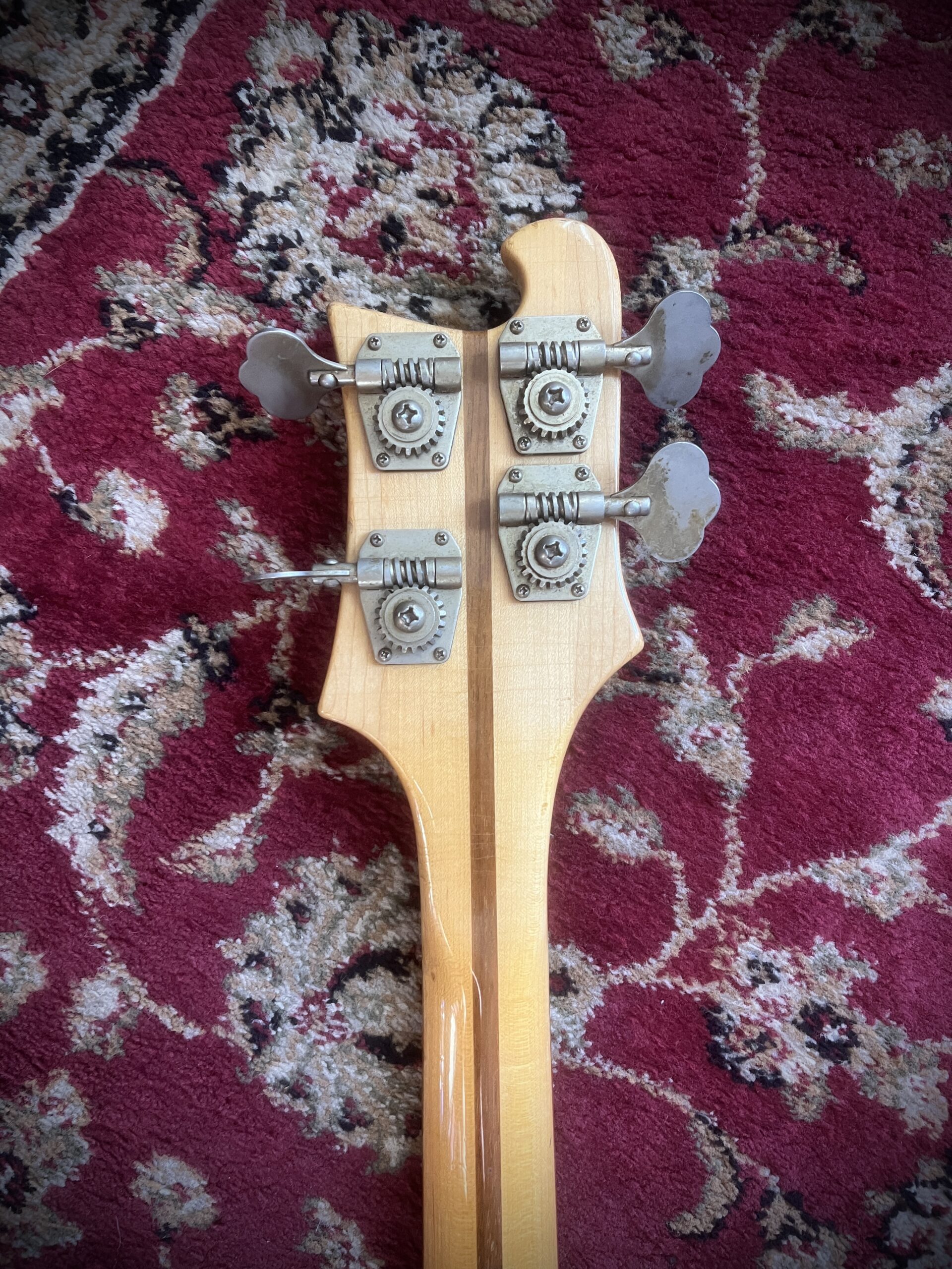 Superb example of early 70s rickenbacker , all original and with rare toaster pickup, checkerboard binding and long triangle inlays,
