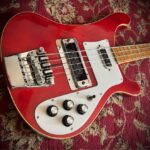 Great condition for this 45 years old Rickenbacker 4001 Bass in very rare Burgunyglo finish. Low action, that thunderous tone only a ricky can achieve and a beautiful and very hard to find finish. This marvellous instrument is completely original beside one replaced tuner screw. The pickup cover is not currently in the bass but still there inside the original tolex hard case. This 4001 Ricky is from the very last period of production of this model, before they got discontinued and replaced by the 4003. it plays and soundsgreat, not heavy in weight and with just a little bit of genuine wear from nearly half a century of life on the road. Amazing collector piece and phenomenal player