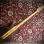 A very rare bass , completely hand made in New Zealand by the genius of Tomm Stanley . They are made using a very unique design and locally sourced timber. Comes with the original branded gig bag Here is a full description from the Stonefield website Topwood: Cypress Fingerboard: Solomon Island Ebony Fingerboard Markers: Burghundy within White Gem Dots Fingerboard Radius: Zero Hardware: Titanium/blue Binding: – fine line: Australian Blackwood Sap – thick edge: Jarrah Nut: Jarrah Back of Neck Finish: Natural An M Series with a twist; This one was built to a unique set of specifications and is one of only two basses we’ve ever built with a zero-radius fingerboard and a centre veneer on the front covering the laminates of the through-body core. It has also been sprayed in a matte satin clear and has a Funk Plate and Ramp, both veneered in tiger myrtle to match the jarrah binding and bridge. String Spacing: Classic (approx 19mm between strings at the bridge) Due to the low serial number, a unique build and the addition of customer requested mods, this bass has true potential for collectibility. A few notes: This is only the second bass we’ve made with a zero radius fingerboard. Note the cypress veneer over the laminates in the centre of the body. This is only the second instrument on which we’ve veneered over the laminates. In addition to the Funk Plate a ramp has been added between the rear pickup and bridge. This is the first bass on which we’ve ever installed a ramp. Both the Funk Plate and the ramp have been surfaced with Tasmainian tiger myrtle. For greater durability the top has been sprayed in a satin matte lacquer over the original hand rubbed oil.