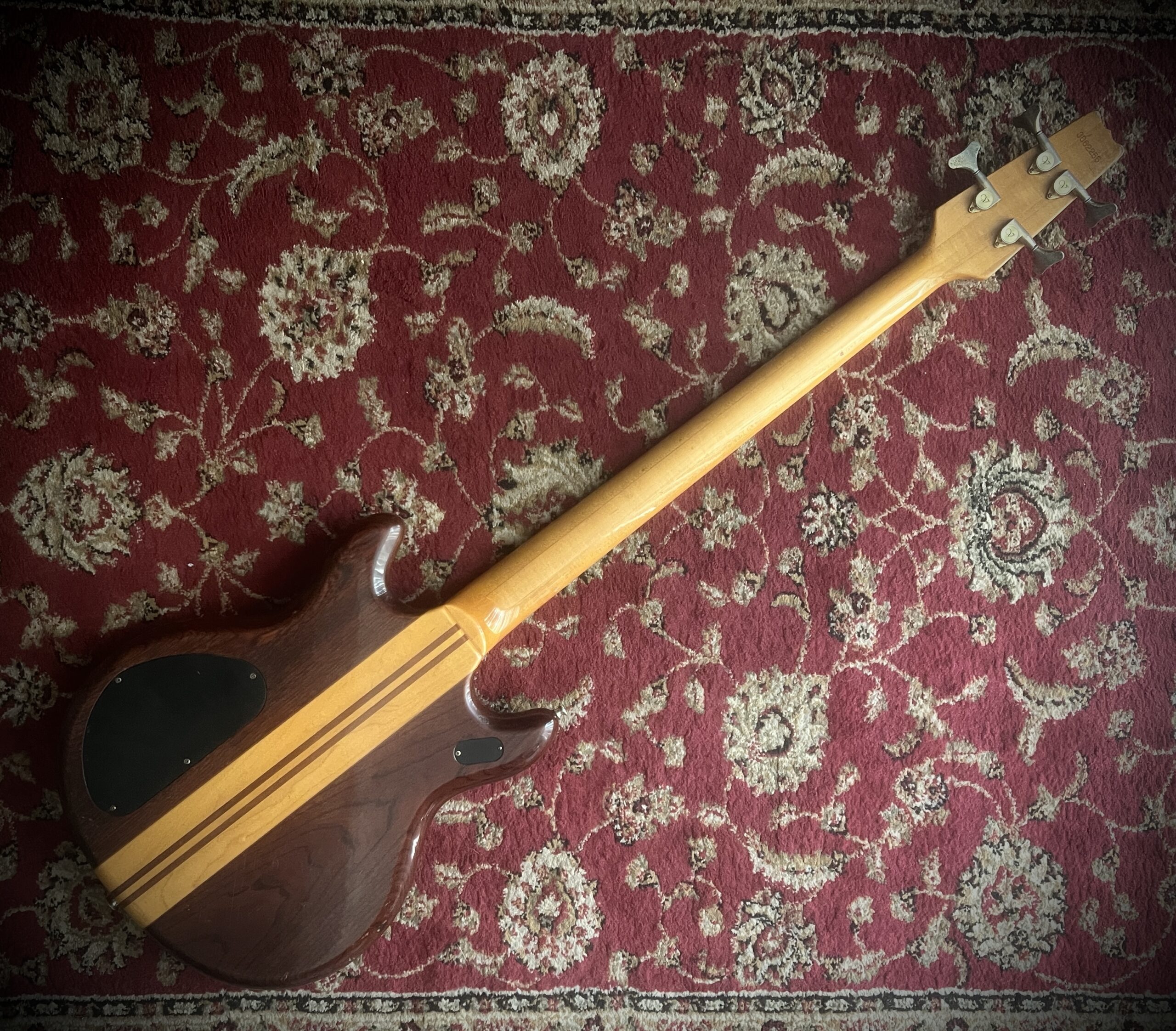 Ebony clear epoxy coated fretboard, neck through build , schaller hardware, bartolini Pj pickups and original tolex case.