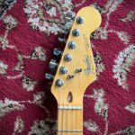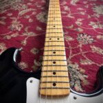 This black 1983 Dan Smith Era Strat is super clean, not much wear and tear, practically mint condition. Smooth players guitar, no fretbuzz. It has a master volume and master tone, with the output on the front side in place of where the tone pot usually is, which was one of the few innovations on these rare Dan smith strats. The black 1983 Dan Smith Era Stratocaster stands as a testament to the innovative period under Dan Smith’s leadership at Fender. Dan Smith served as the president of Fender Musical Instruments Corporation from 1981 to 1985, overseeing a pivotal era of change and revitalization for the iconic guitar brand. The 1983 Stratocaster, produced during Smith’s tenure, reflects his commitment to quality and craftsmanship. These guitars are known for their distinct features, including a smaller, more compact headstock, a six-point synchronized tremolo bridge, and a unique 4-bolt neck plate design. The black finish adds a touch of elegance to the instrument. Dan Smith’s contributions at Fender during this period revitalized the company’s reputation for producing high-quality guitars, and his influence is still felt in the legacy of instruments like the 1983 Dan Smith Era Stratocaster. Comes with original case
