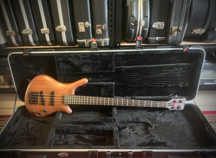 A real gem and a must have for any Warwick enthusiast, this 41 years old Streamer is one of the early “paddle headstock” ones with the original design, before the german company change the look of it after having issues with Stuart Spector. Only the first 300 streamer made came out with the paddle headstock and after the first 150, Warwick added ”licensed by Spector” on the trussrod cover to avoid issues with the American Brand. The serial number on this one is 103, and has a phenomenal neck and weight (3.5kg), making it super comfortable to play and the original EMG pickups have a growl that would make the crowd rattle their teeth.