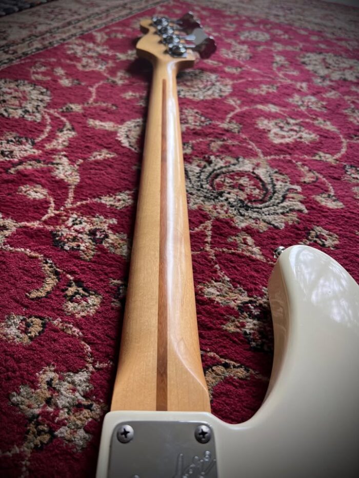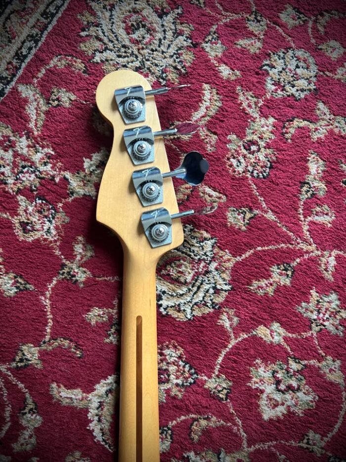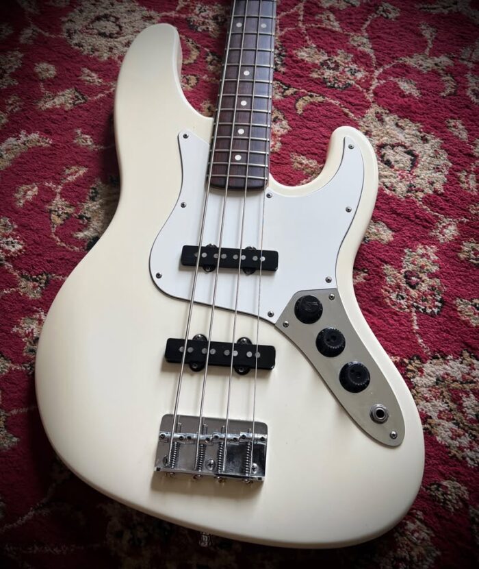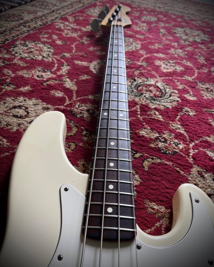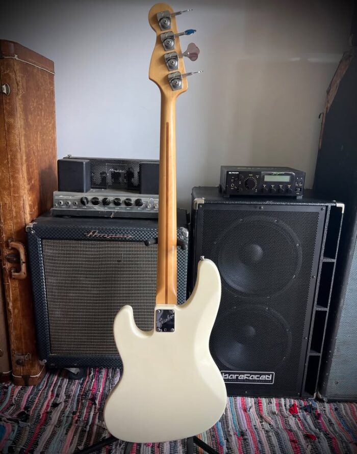 This version of the jazz bass only lasted 3 years and is known as “longhorn” or “boner” due to the longer upper horn to balance the weight as the short one has been cut deeper to access all the frets on the neck.