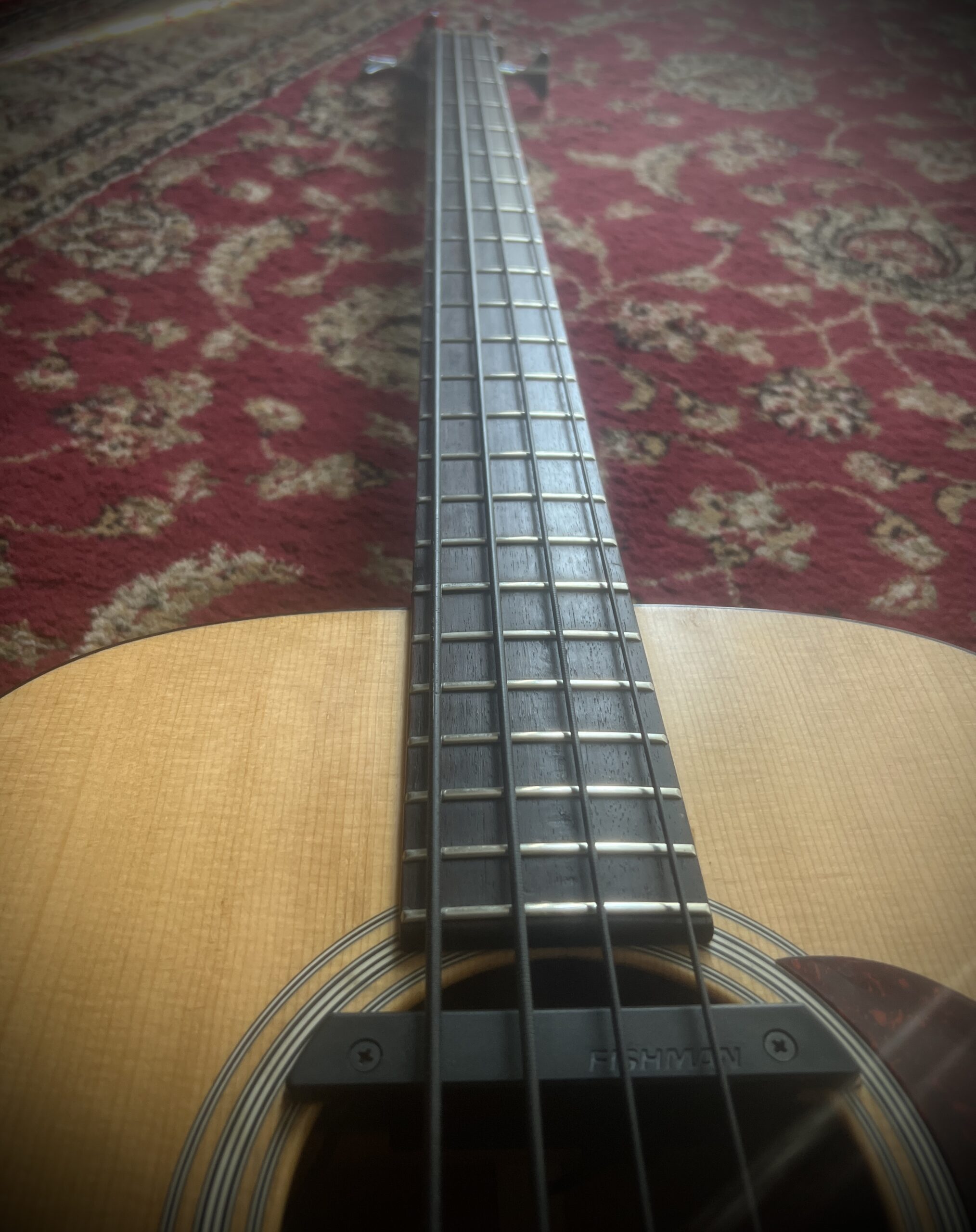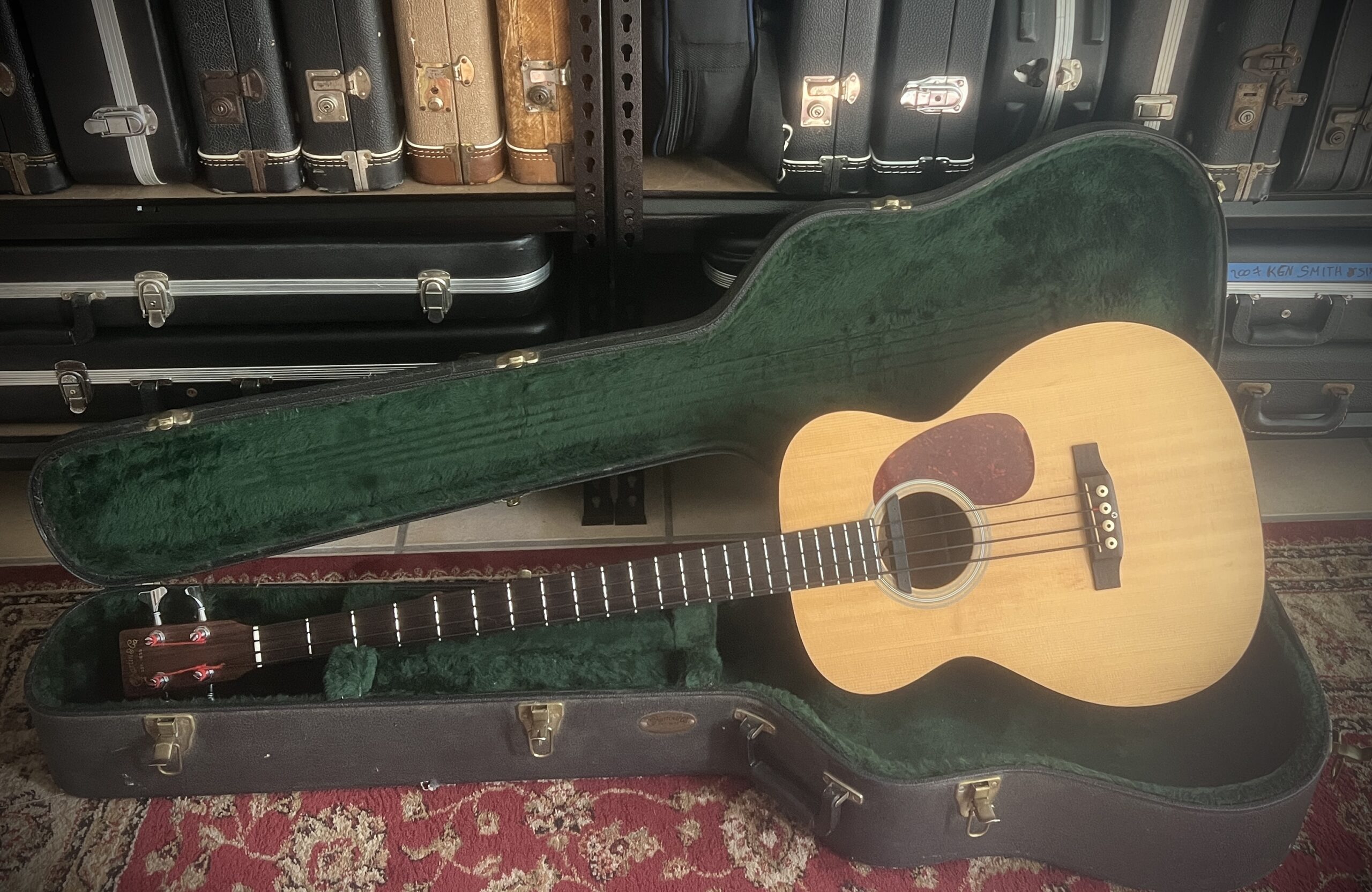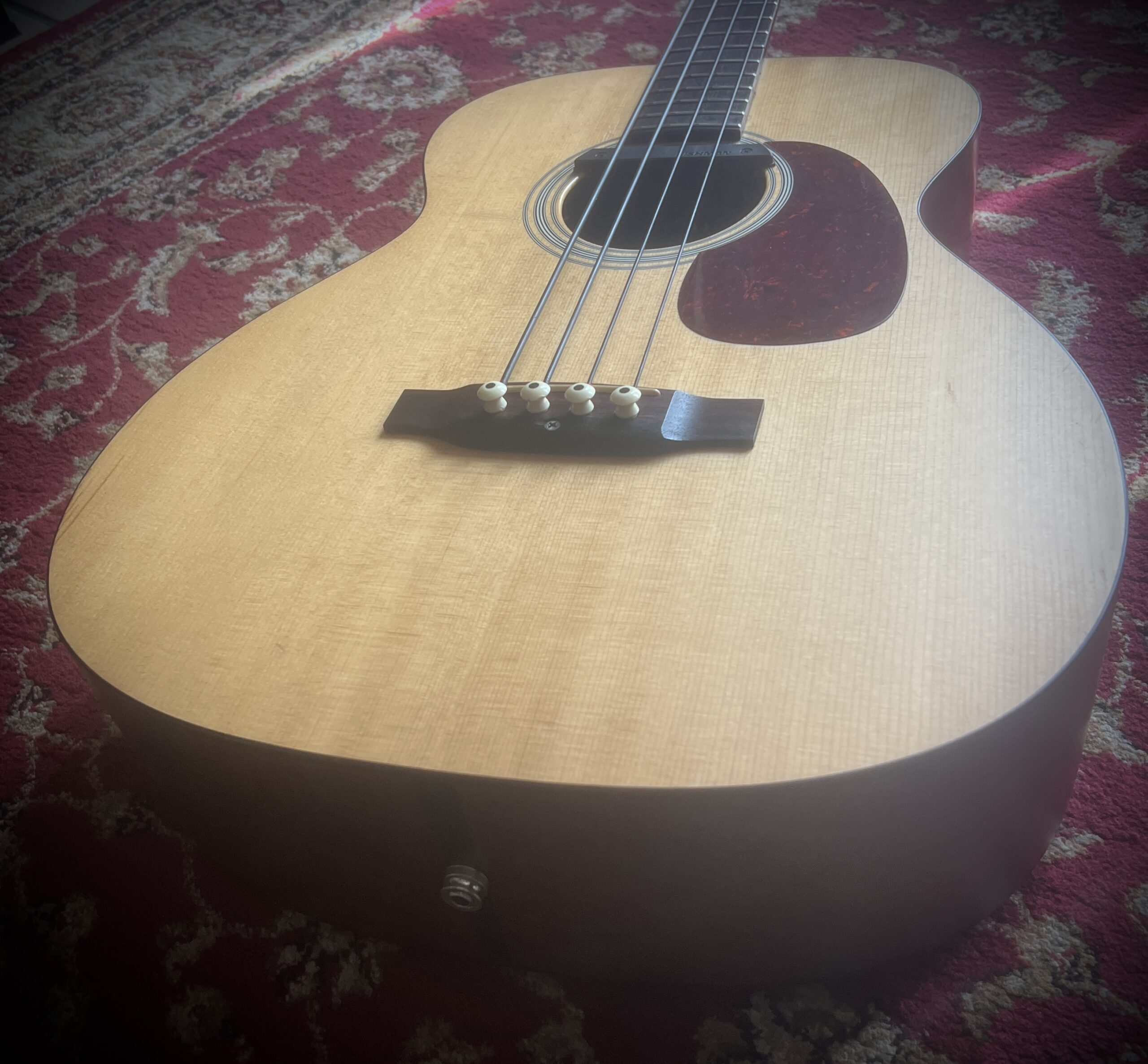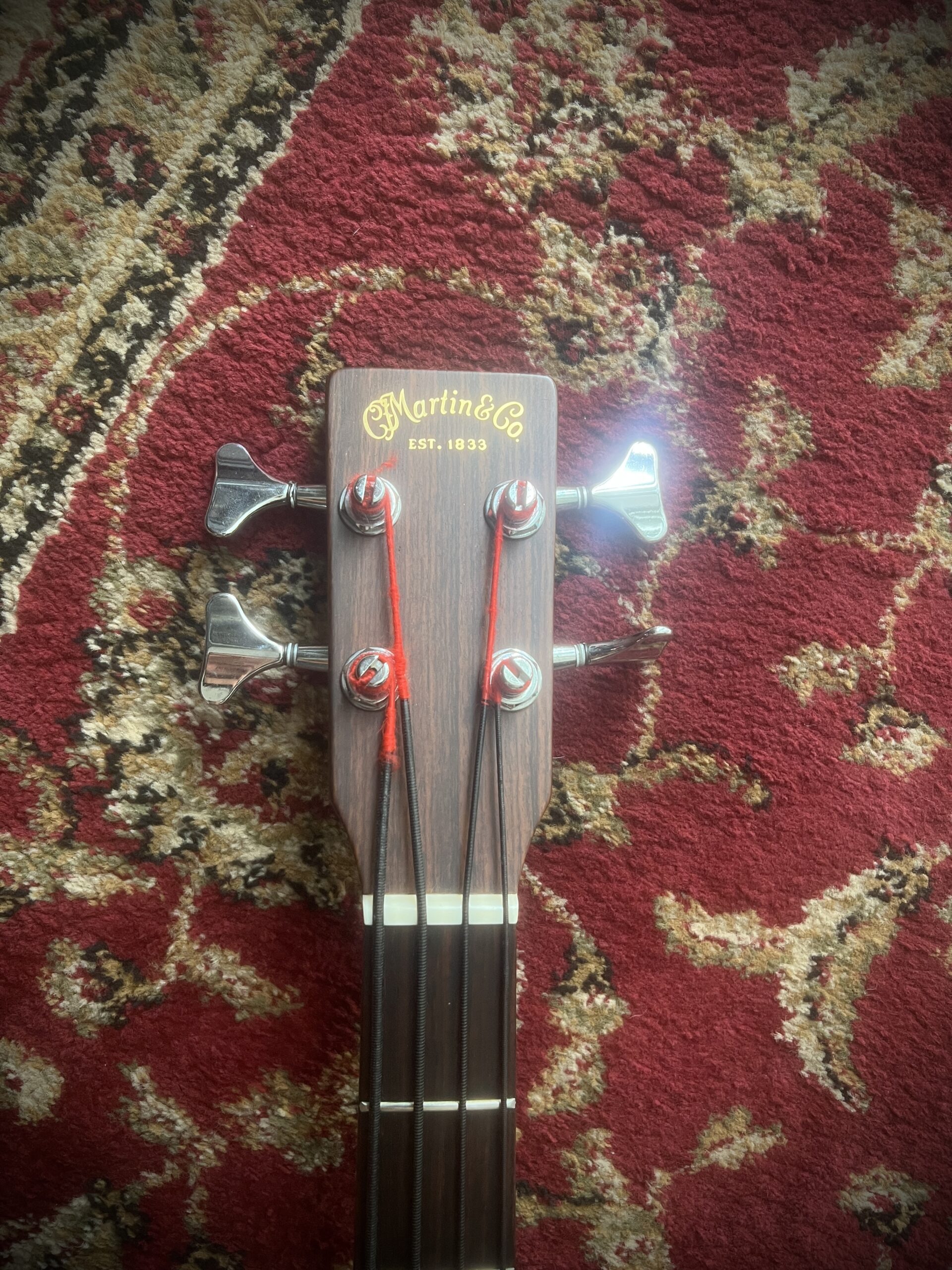 I am usually not a huge fan of acoustic basses , but this one is on a different level. Light, not too big and with a super comfortable and stable neck, this B1 is one of the nicest acoustic basses I have owned. Equipped with a Fishman rare earth pickup (rap $600) so it can be plugged in to an amp or desk. comes inside the original Martin hard case These are solid wood throughout — a nice spruce top and mahogany back and sides all done in a satin finish. Top wood: solid spruce Back & sides wood: solid mahogany Bracing type: x Bridge: rosewood Fretboard: rosewood Neck wood: mahogany Neck shape: slim-medium C Board radius: 16″ Truss rod: adjustable Fret style: large Scale length: 34″ Nut width: 1 9/16″ Body width: 16″ Body depth: 4 7/8″