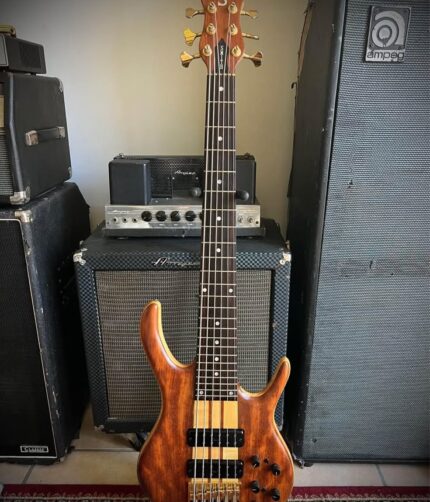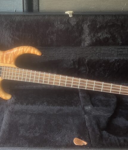 A real gem and a must have for any Warwick enthusiast, this 41 years old Streamer is one of the early “paddle headstock” ones with the original design, before the german company change the look of it after having issues with Stuart Spector. Only the first 300 streamer made came out with the paddle headstock and after the first 150, Warwick added ”licensed by Spector” on the trussrod cover to avoid issues with the American Brand. The serial number on this one is 103, and has a phenomenal neck and weight (3.5kg), making it super comfortable to play and the original EMG pickups have a growl that would make the crowd rattle their teeth.