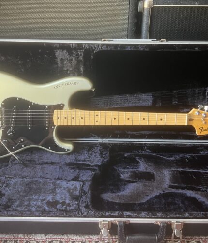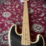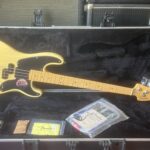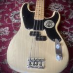 mint condition 2011 Fender 60th Anniversary Precision Bass, Blonde finish with the original SKB flight case and case candy. Extremely clean bass with only zero signs of use. The body wood is stained then the blonde is sprayed over the top, and it looks amazing. It’s been fully set up and has a straight neck with a great action. Nut width: 41.9 mm. Depth at 1st fret: 21.3 mm. Plastic still on tuners and pick guard . Features include an ash body, maple neck and fretboard with modern 9.5″ radius and medium jumbo frets, vintage Precision Bass split single-coil pickup, modern tuners, high-mass vintage bridge, knurled control knobs, black pickguard, Blackguard Blonde thin-skin lacquer finish, and Fender/SKB molded case. To further distinguish it as a special instrument created for the occasion, the 60th Anniversary Precision Bass bears a commemorative chrome neck plate honouring six decades of enduring Fender legacy.