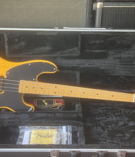 Superb condition for this Fender Made in Japan vintage reissue ’51 Precision Bass in a classic 50’s butterscotch blonde over ash. These were apart of Fender Japan’s “vintage Collection” series. The pick guard retains the original protective factory plastic. Everything about this bass is just perfect, from the tone, to the feel and the condition is a 10/10. Includes HARD CASE Body: Ash Neck: Maple Neck profile; C Shape, 7.25 Radius, 1st Fret .835 12th fret .972 Nut width: 1 11/16