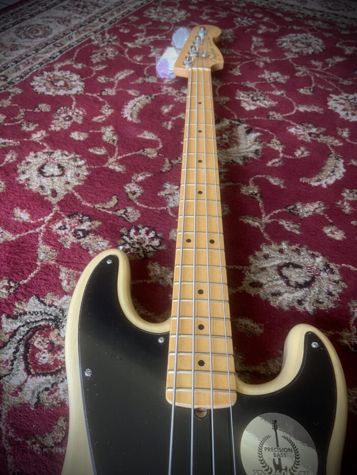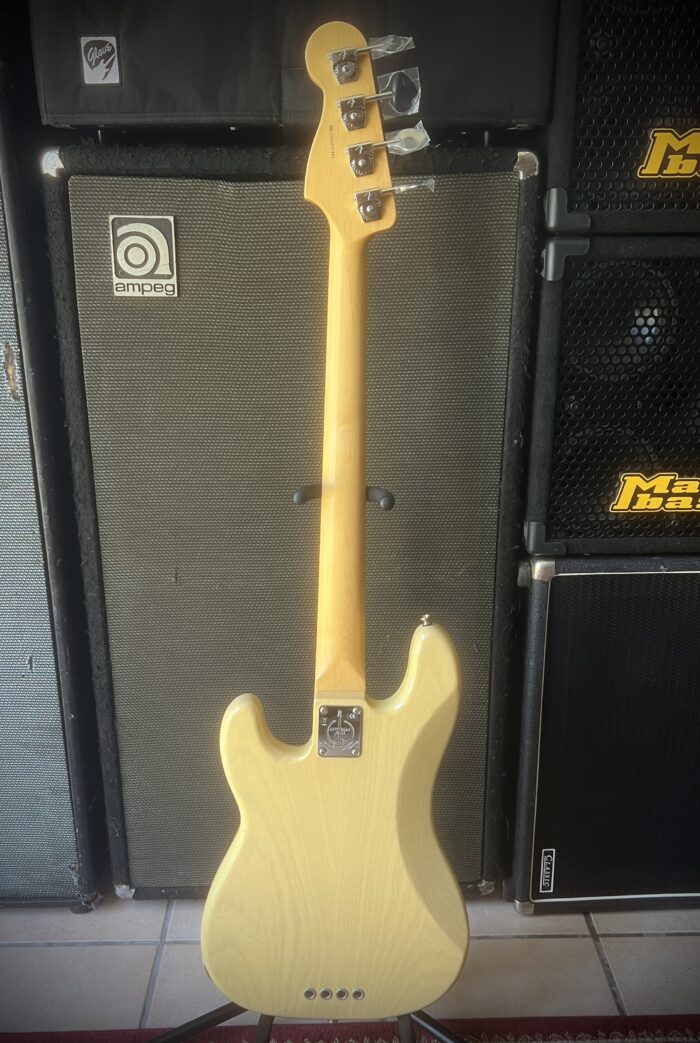 This version of the jazz bass only lasted 3 years and is known as “longhorn” or “boner” due to the longer upper horn to balance the weight as the short one has been cut deeper to access all the frets on the neck.