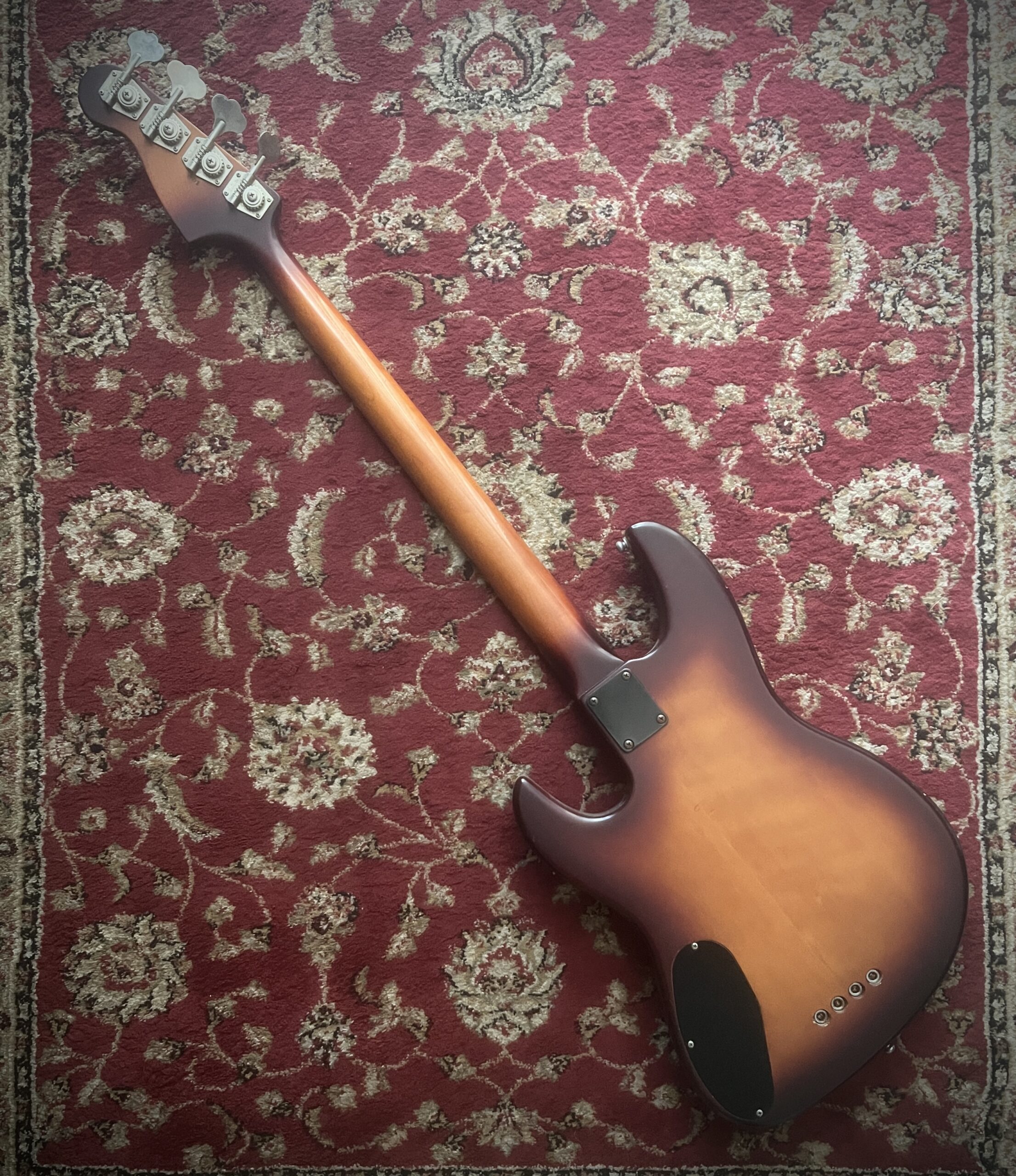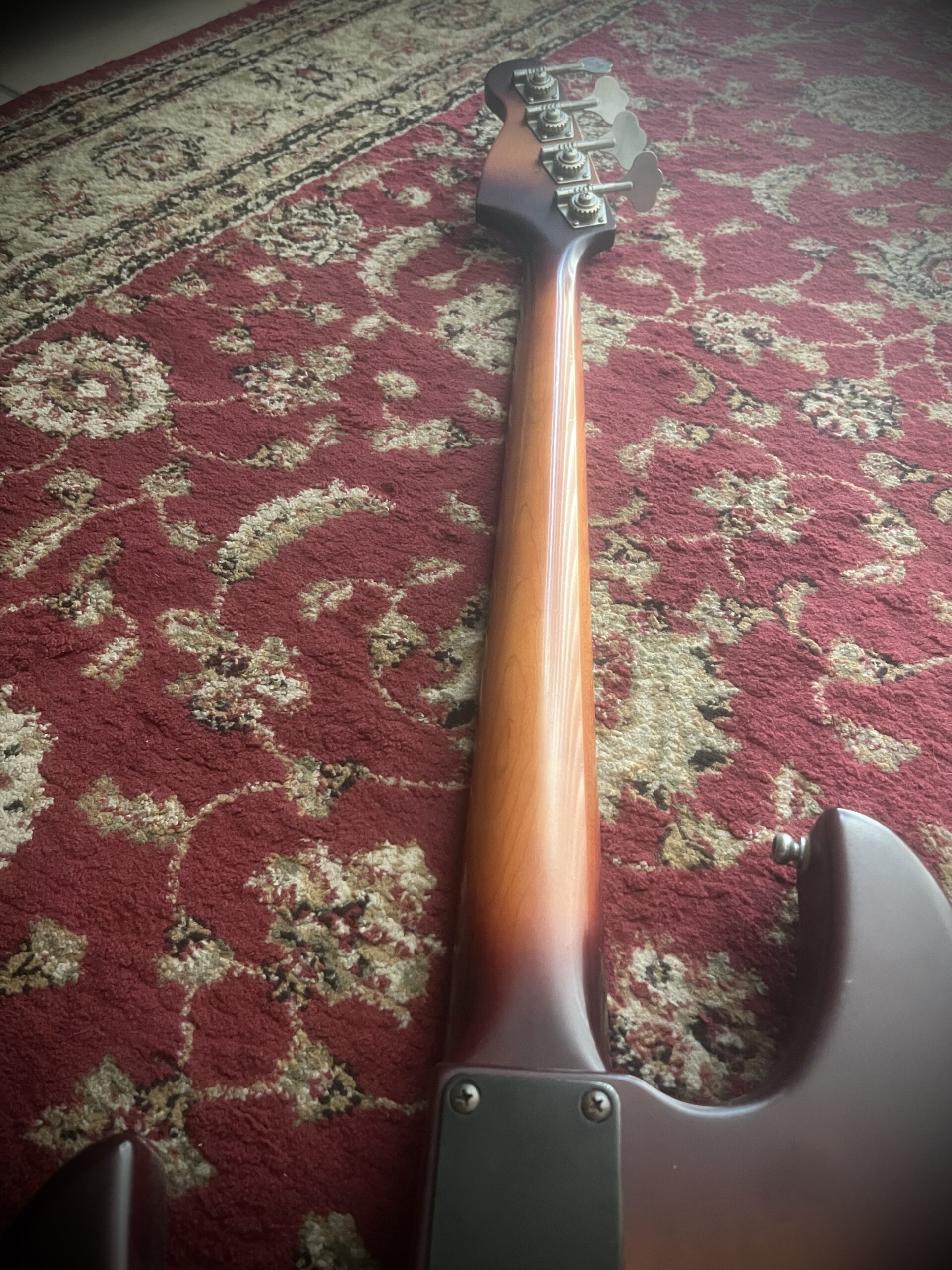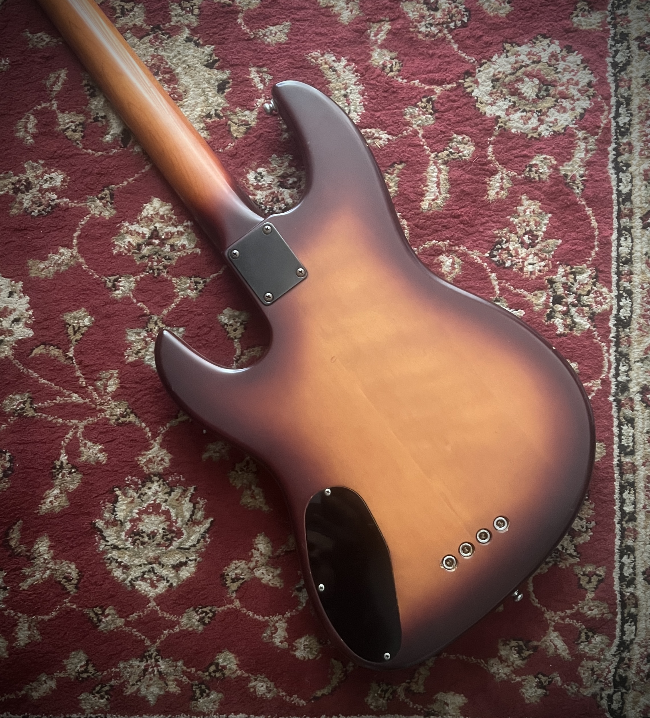 Ebony clear epoxy coated fretboard, neck through build , schaller hardware, bartolini Pj pickups and original tolex case.